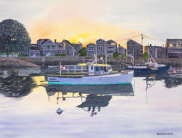 Deb Schradieck and Audi Souza of Gallery Number One will be showcasing their new works: “Windy”, a watercolor by Deb; and “Gulls at Front Beach”, an acrylic painting by Audi, at the July 13th ArtWalk.